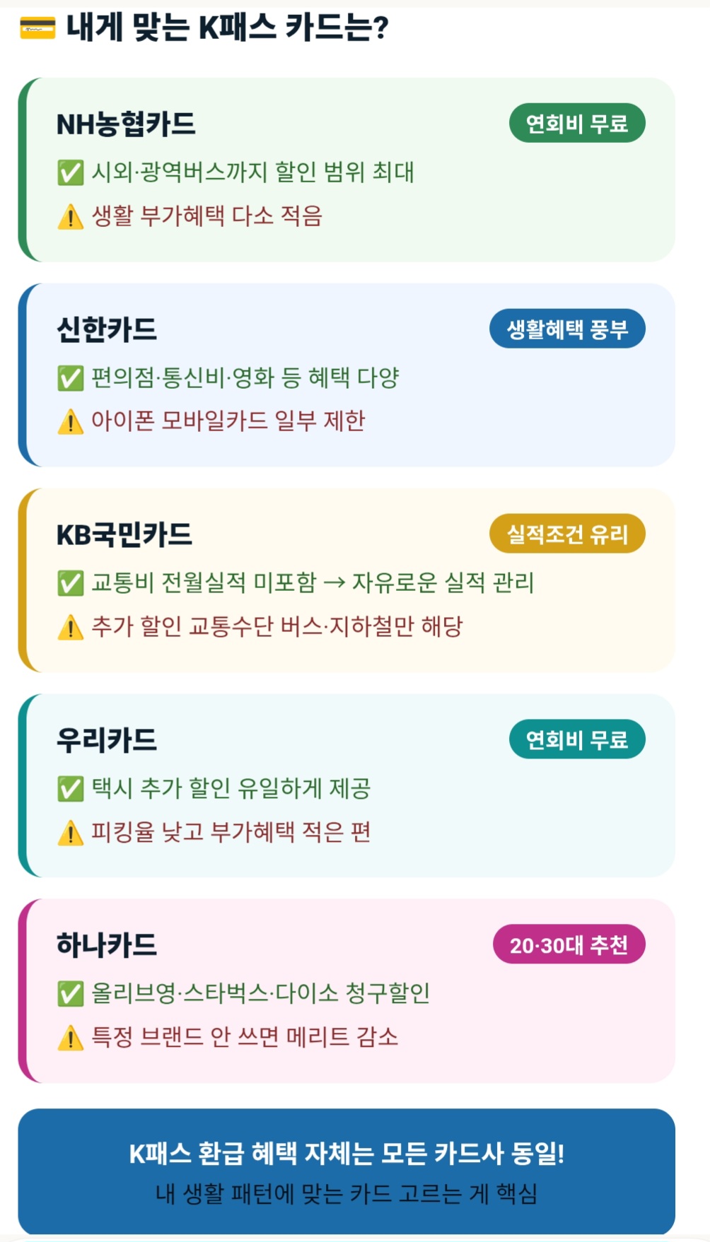 ▶ K패스 공식 홈페이지에서 카드사별 비교 확인: kpass.go.kr